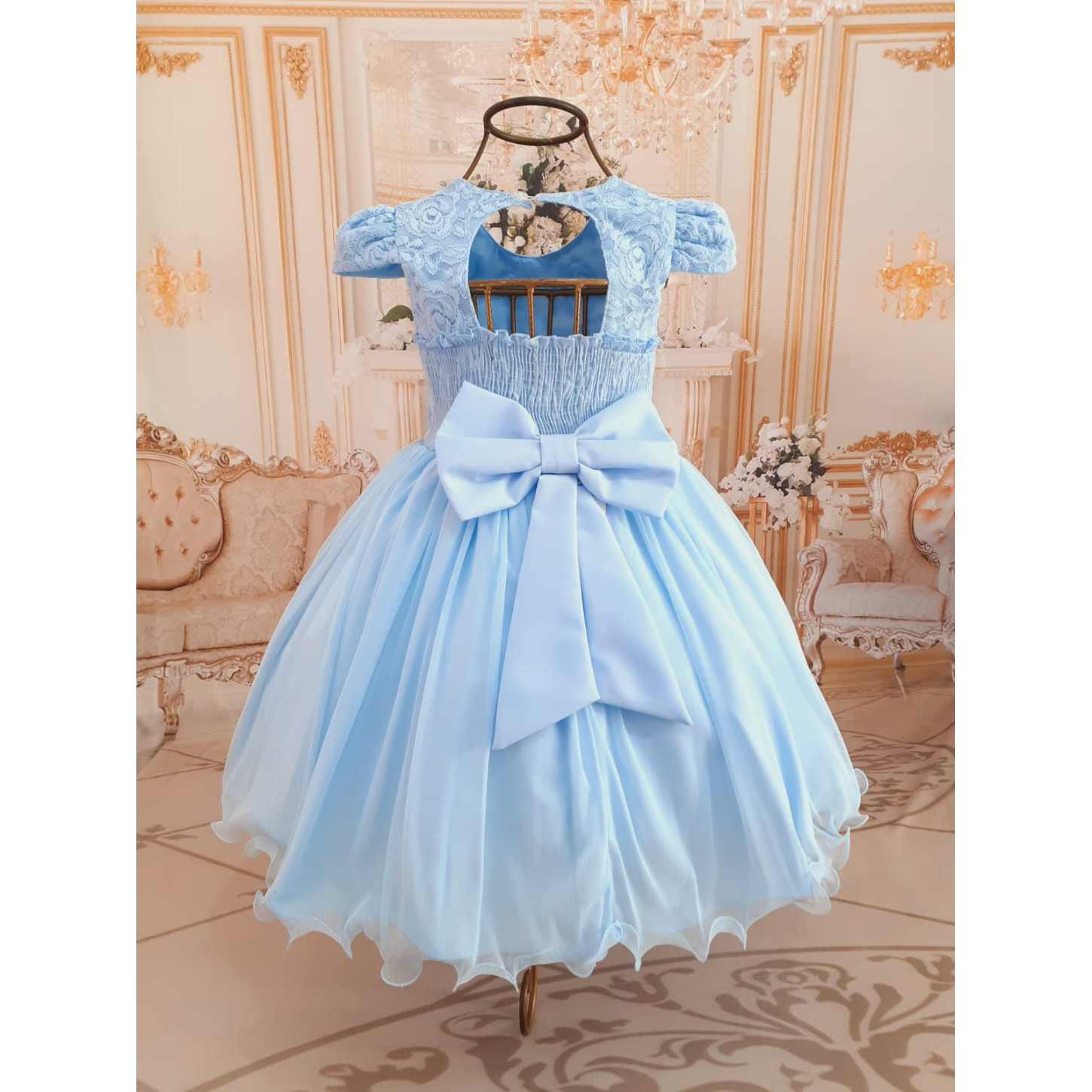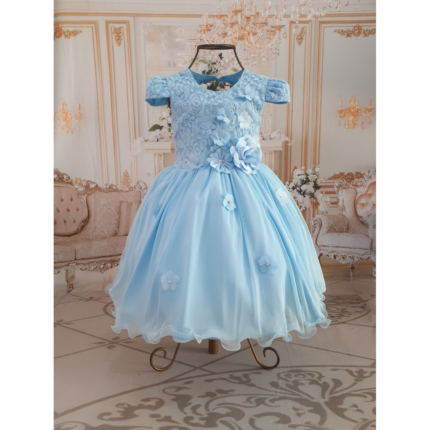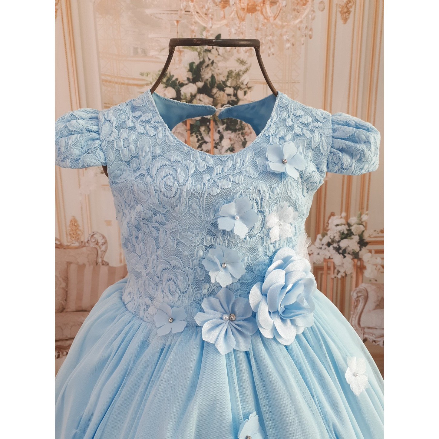 VESTIDO AZUL TULE COM FLORES 3D TAM. 1 ao 3