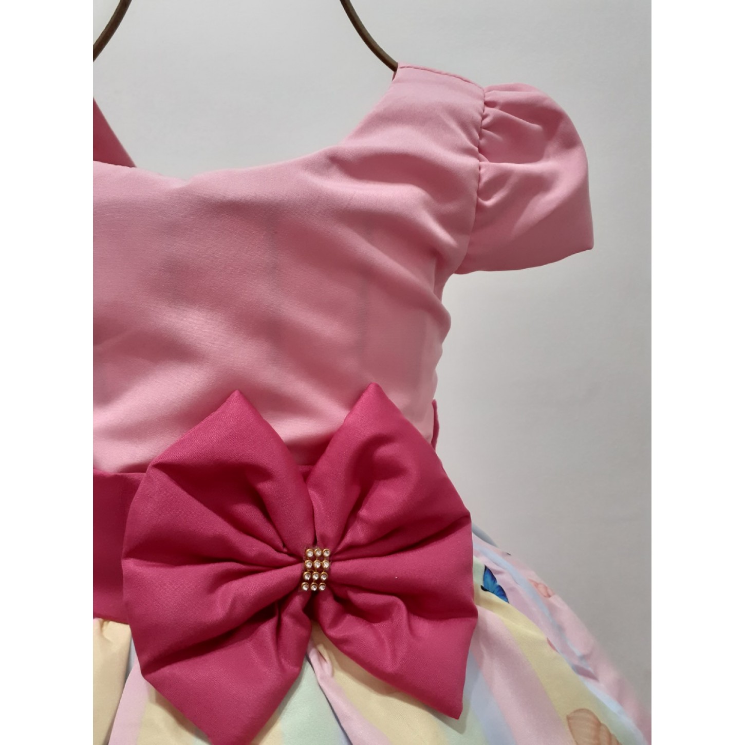 Possui um lindo cinto com laço na cintura.